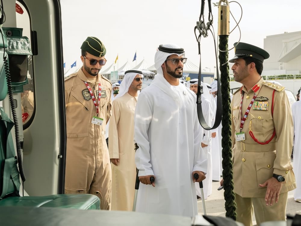 وأكَّد سموّه، خلال الزيارة، الأهمية التي يكتسبها معرض دبي للطيران، الذي رسَّخ مكانته على خريطة الصناعة الجوية العالمية بعرض أحدث الابتكارات والتقنيات والحلول في مجال الطيران والفضاء والدفاع، إضافةً إلى ما يوفِّره من فرص لتعزيز التعاون المشترك بين الشركات والمؤسَّسات الوطنية وكبرى الشركات العالمية.