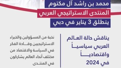– يناقش حالة العالم العربي سياسياً واقتصادياً في 2024.. تحت رعاية محمد بن راشد.. المنتدى الاستراتيجي العربي ينطلق 3 يناير…