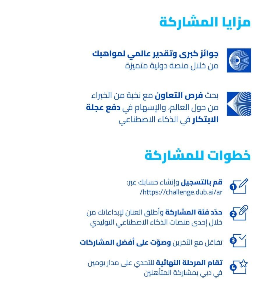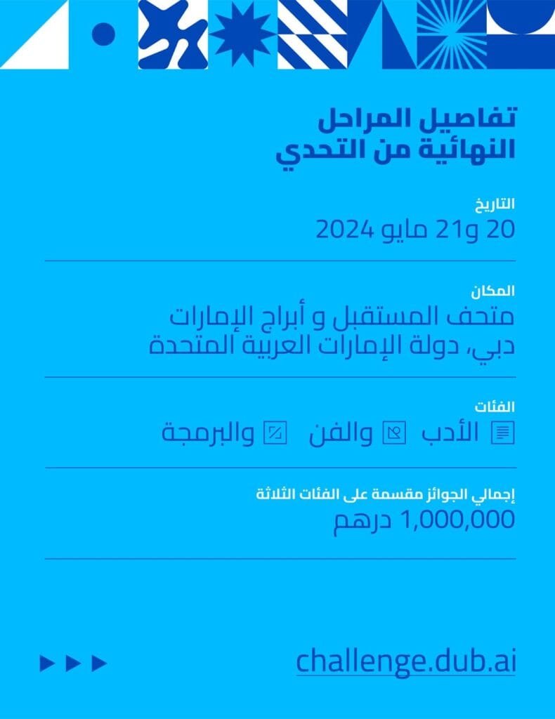وللمزيد من المعلومات حول كيفية التسجيل في “التحدي الدولي للذكاء الاصطناعي”، يمكن زيارة الموقع الإلكتروني: www.challenge.dub.ai/ar.