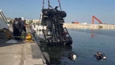 انتشل غواصو قسم الإنقاذ البحري في مركز شرطة الموانئ بدبي بالتعاون مع الإدارة العامة للنقل والإنقاذ، مركبة تحميل بضائع، سقطت…