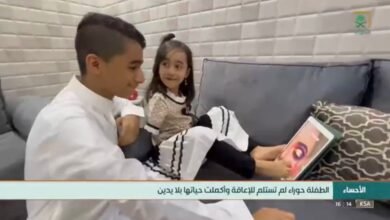 شاهد.. طفلة سعودية بلا يدين تتغلب على إعاقتها وتمارس حياتها بشكل طبيعي