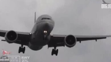 شاهد.. طيار يقاوم الرياح الشديدة ويهبط بطريقة احترفية في مطار هيثرو