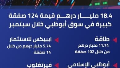 124 صفقة كبيرة في سوق أبوظبي بقيمة 18.4 مليار درهم منذ مطلع سبتمبر